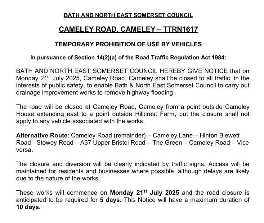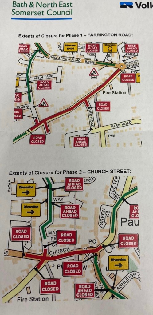 Paulton Road Closures 28.07.25 for 5 days 0700-1900