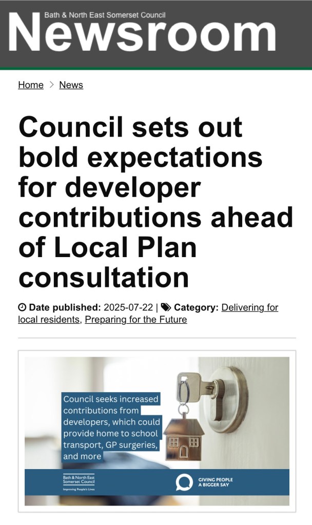 BaNES seek increased financial contributions from developers, which could provide home to school transport, GP surgeries, Early Years provision and Special Educational Needs and Disabilities (SEND) provision.