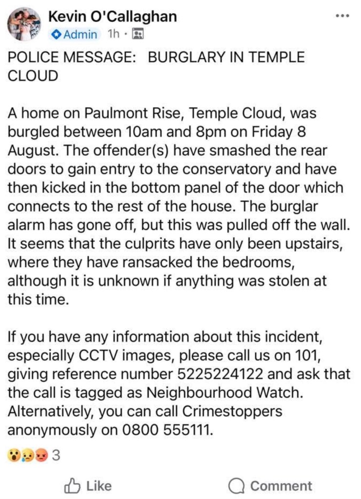 But it’s also worth noting that Temple Cloud remains a very safe and crime free area. For the time being at least…